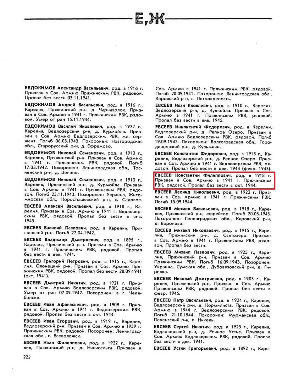Призван в Советскую Армию Пряжинским РВК 24 июня 1941 года.