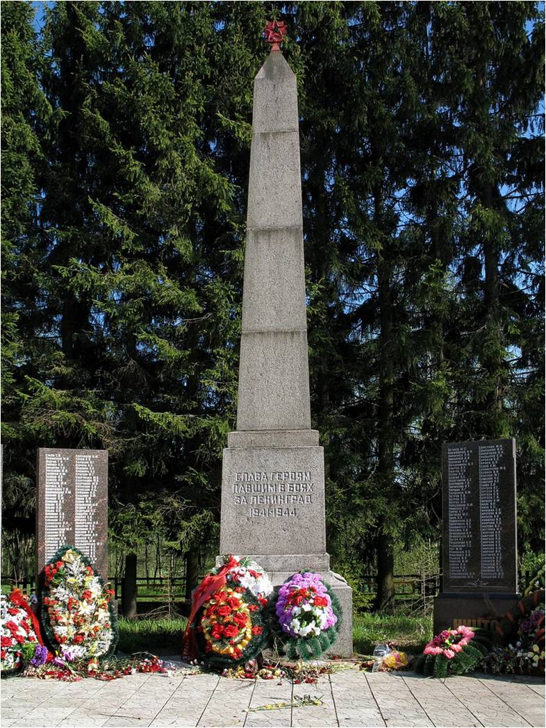 Мемориальная плита на братской могиле в деревне Черная Речка.