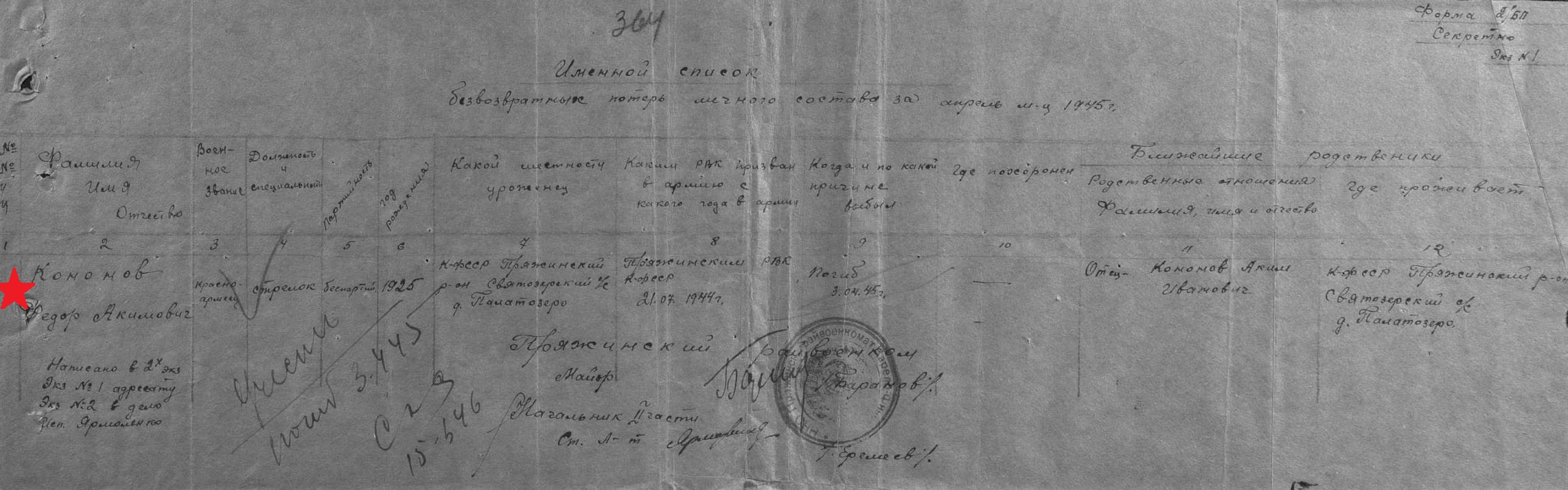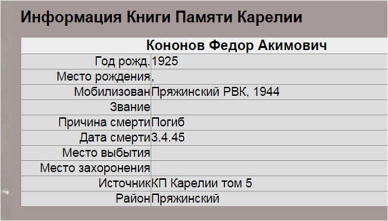 Призван в Советскую Армию Пряжинским райвоенкоматом в 1944 году.