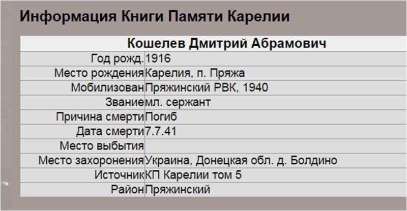 Призван в Советскую Армию в 1940 году Пряжинским РВК.