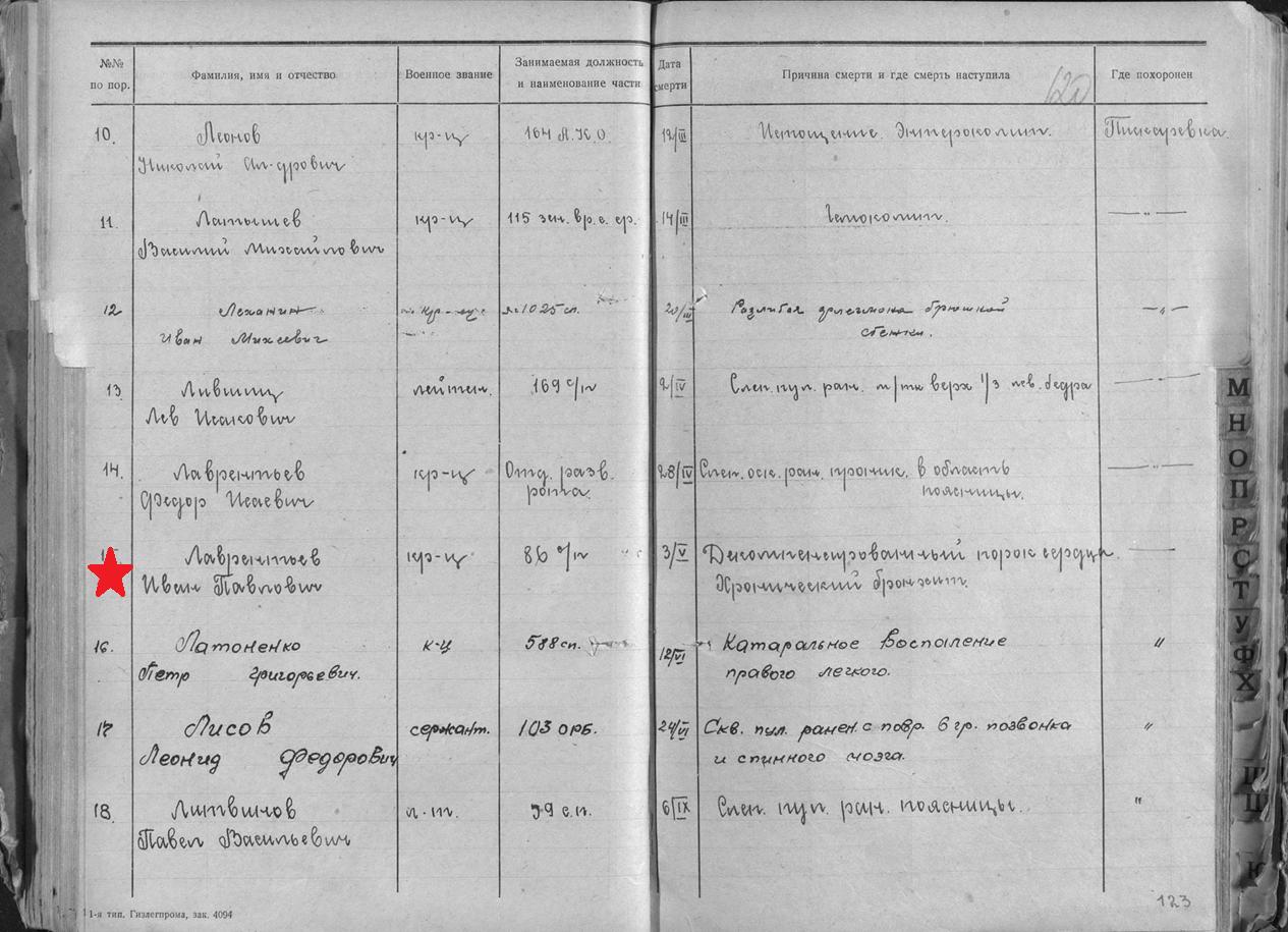 14 апреля 1942 года доставлен в госпиталь 2222 ЭГ.