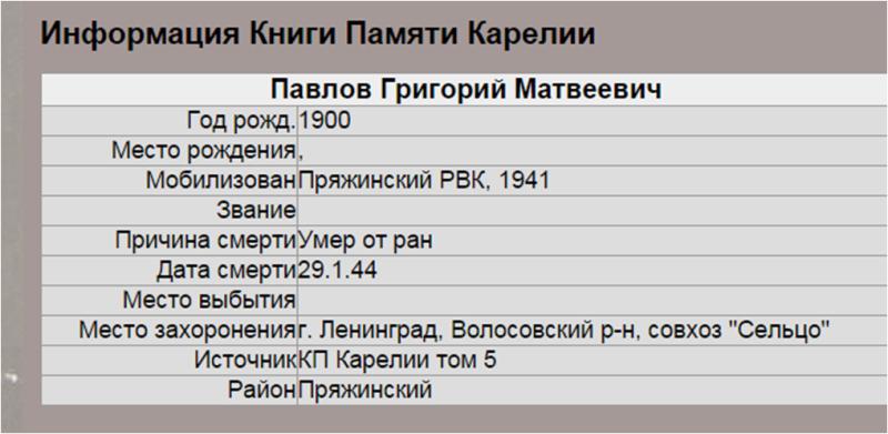Призван в Советскую армию в 1941 году Пряжинским РВК.
