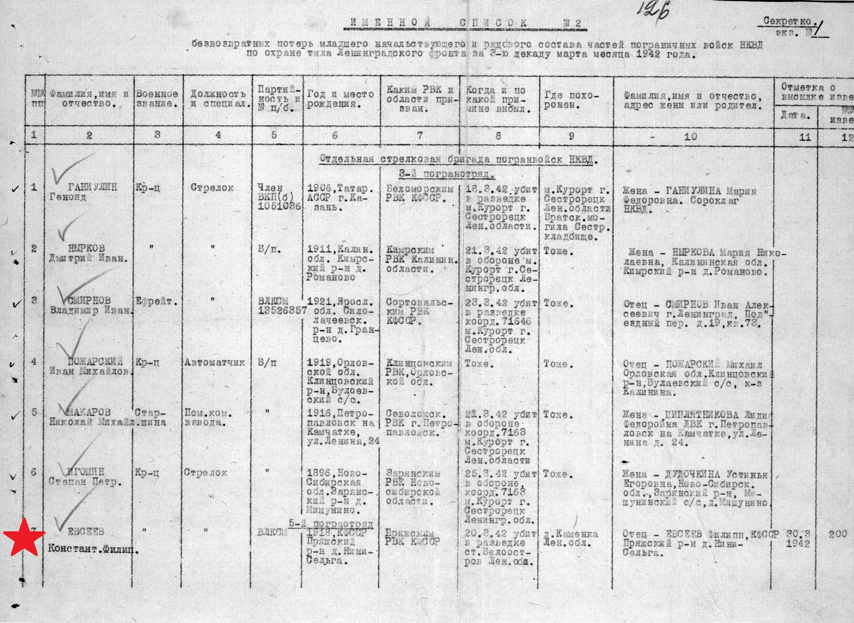 Рядовой, наблюдатель 5-го погранотряда войск НКВД по охране тыла Ленинградского фронта.