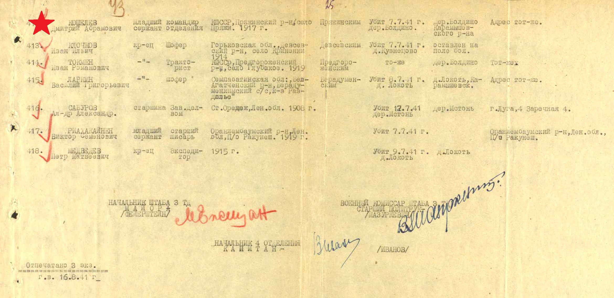Призван в Советскую Армию в 1940 году Пряжинским РВК.