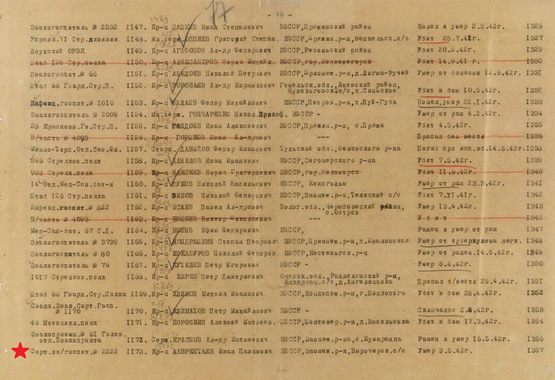 14 апреля 1942 года доставлен в госпиталь 2222 ЭГ.