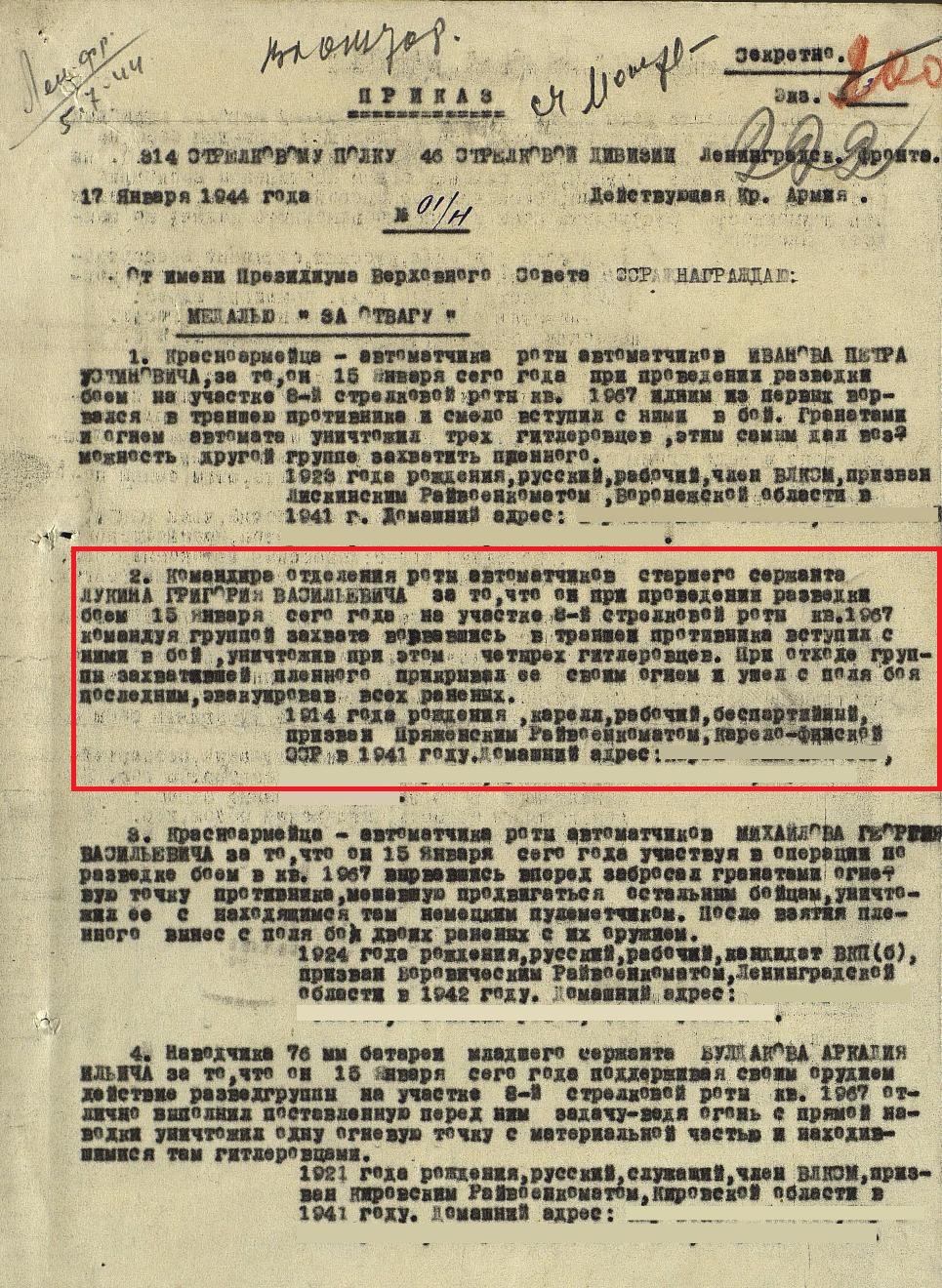Призван Пряжинским РВК в 1941 году.