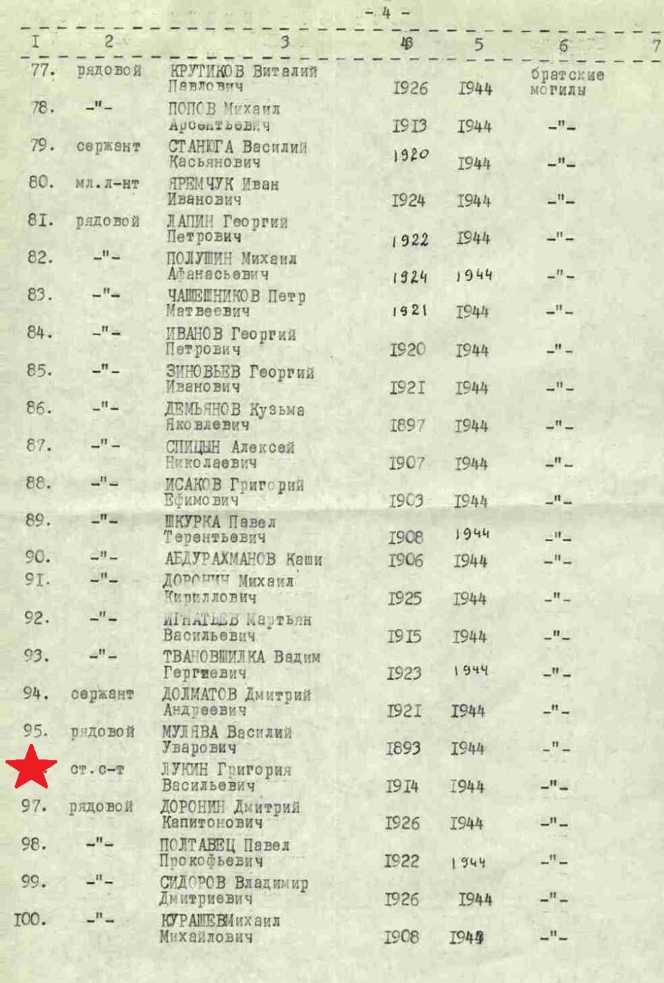 Погиб в 1944 году.