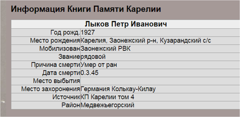 Родился в 1927 году, Карелия, Заонежский район, Кузурандский с/с, д. Афонино.
