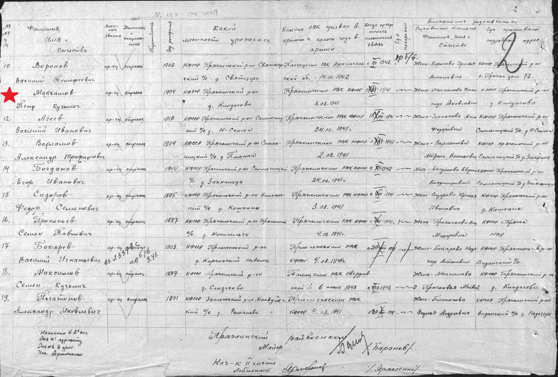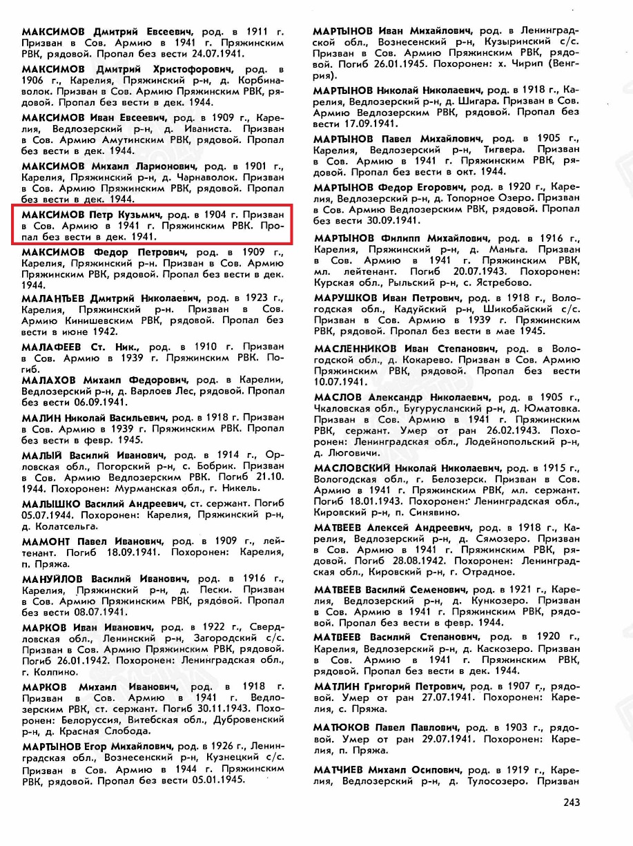 Родился в 1904 году в д.Киндасово, Пряжинского района, Карело-Финской СССР (родной брат Максимова Семена Кузьмича).
