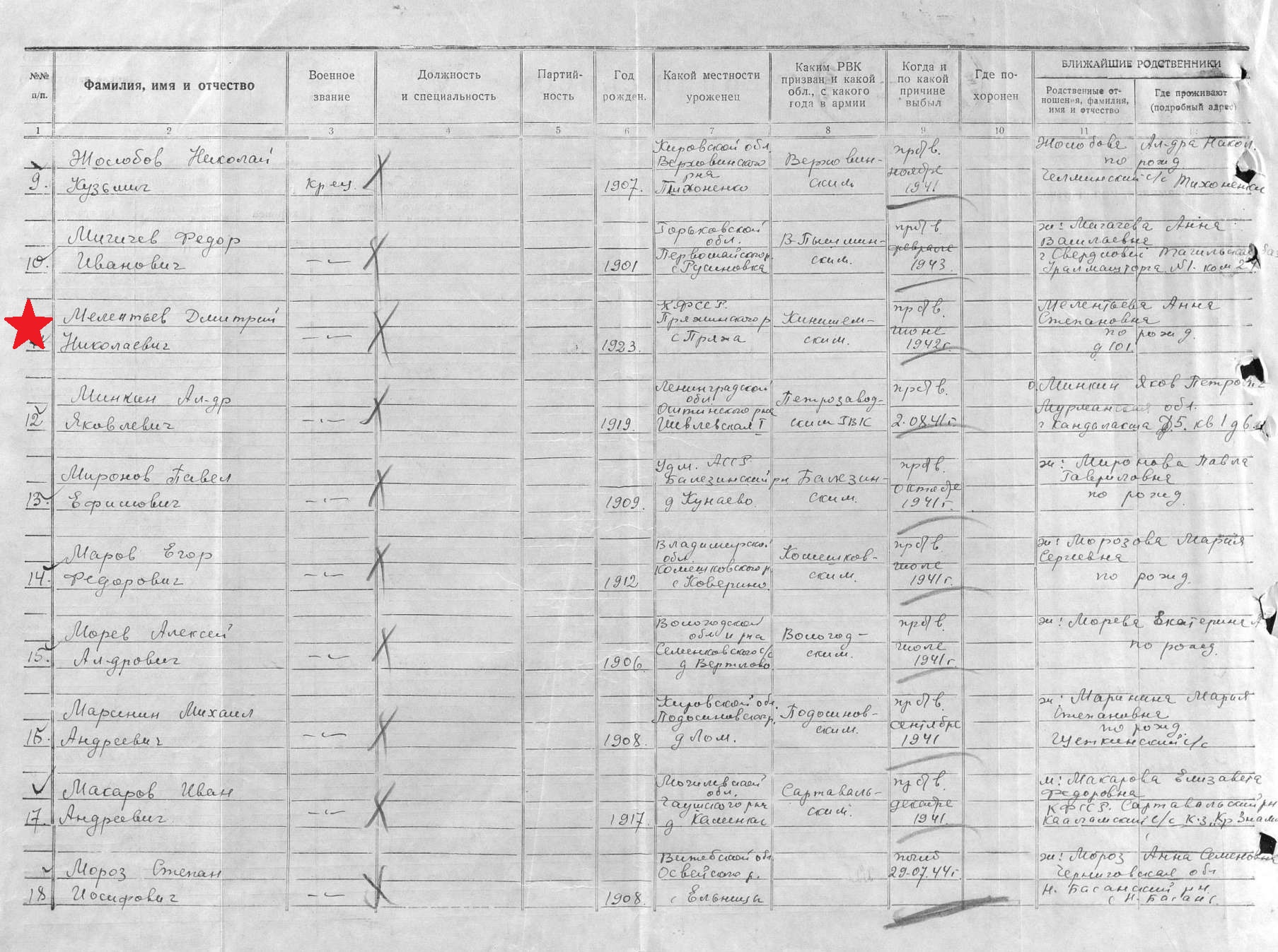 Двоюродный брат М.В. Мелентьевой, до войны работал на гидроэлектростанции в Пряже.