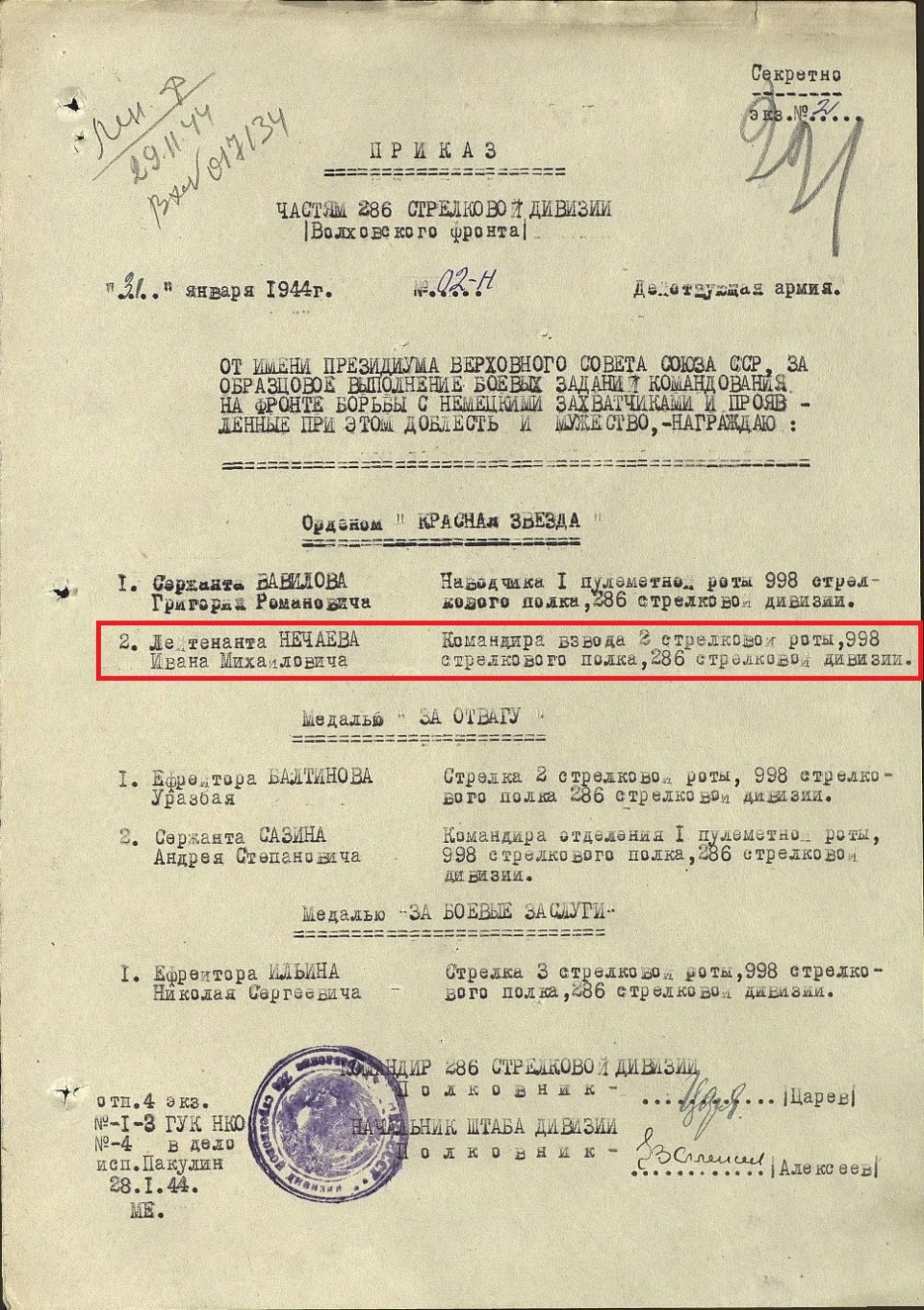 стрелкового полка 286 стрелковой дивизии 59 армии.