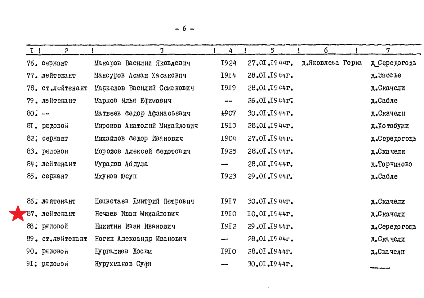 Погиб 30 января 1944 года у деревни Скачели Новгородской области.