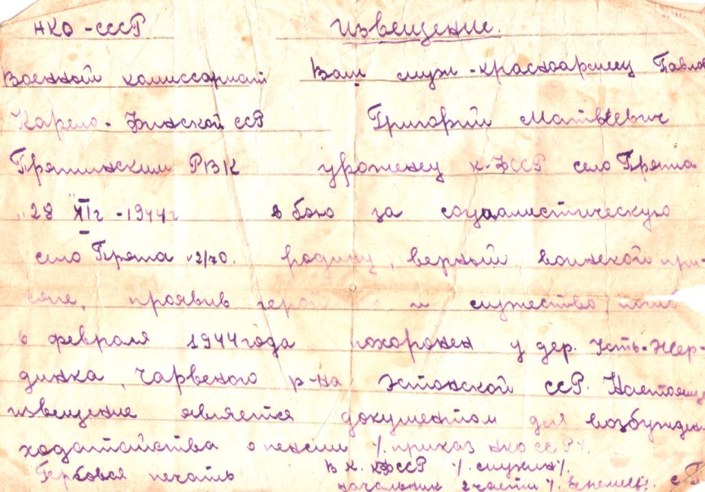 Призван в Советскую армию в 1941 году Пряжинским РВК.