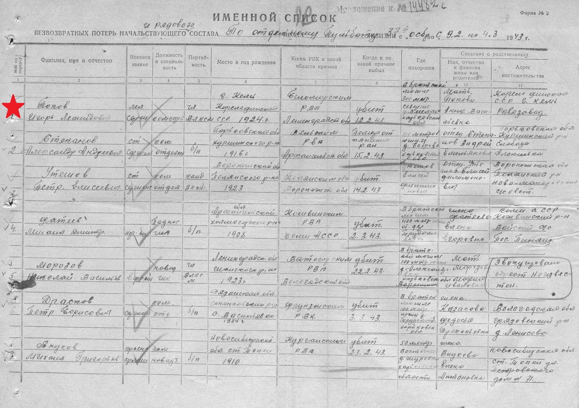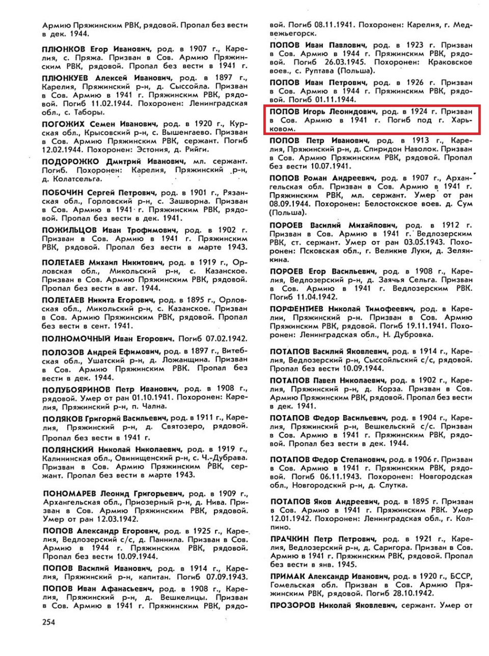 Похоронен: Украинская ССР, Харьковская область, д. Веселая, севернее, 300 м, братская могила.