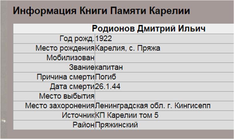 Родился в 1922 году, Карело-Финская ССР, село Пряжа.