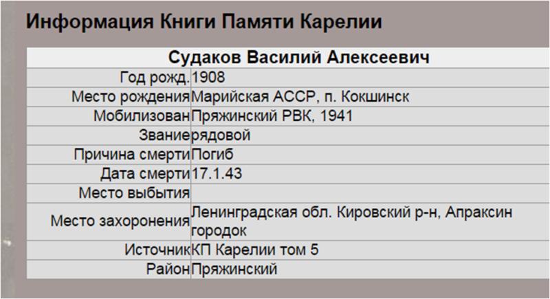 Призван в Советскую Армию в 1941 году Пряжинским РВК.