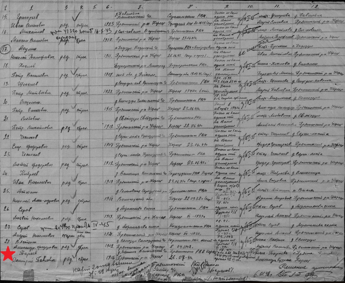 Призван в Советскую Армию 26 июля 1941 года Пряжинским РВК, рядовой.
