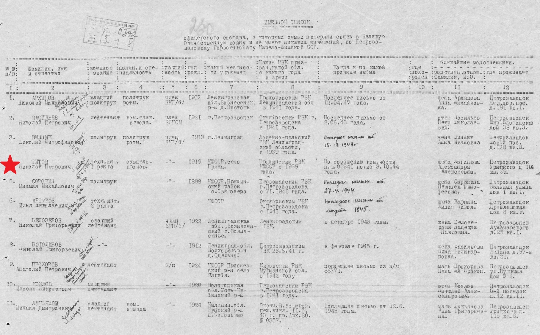 Дата и место призыва - 1939 год, Пряжинский РВК КФССР, Пряжинского района.