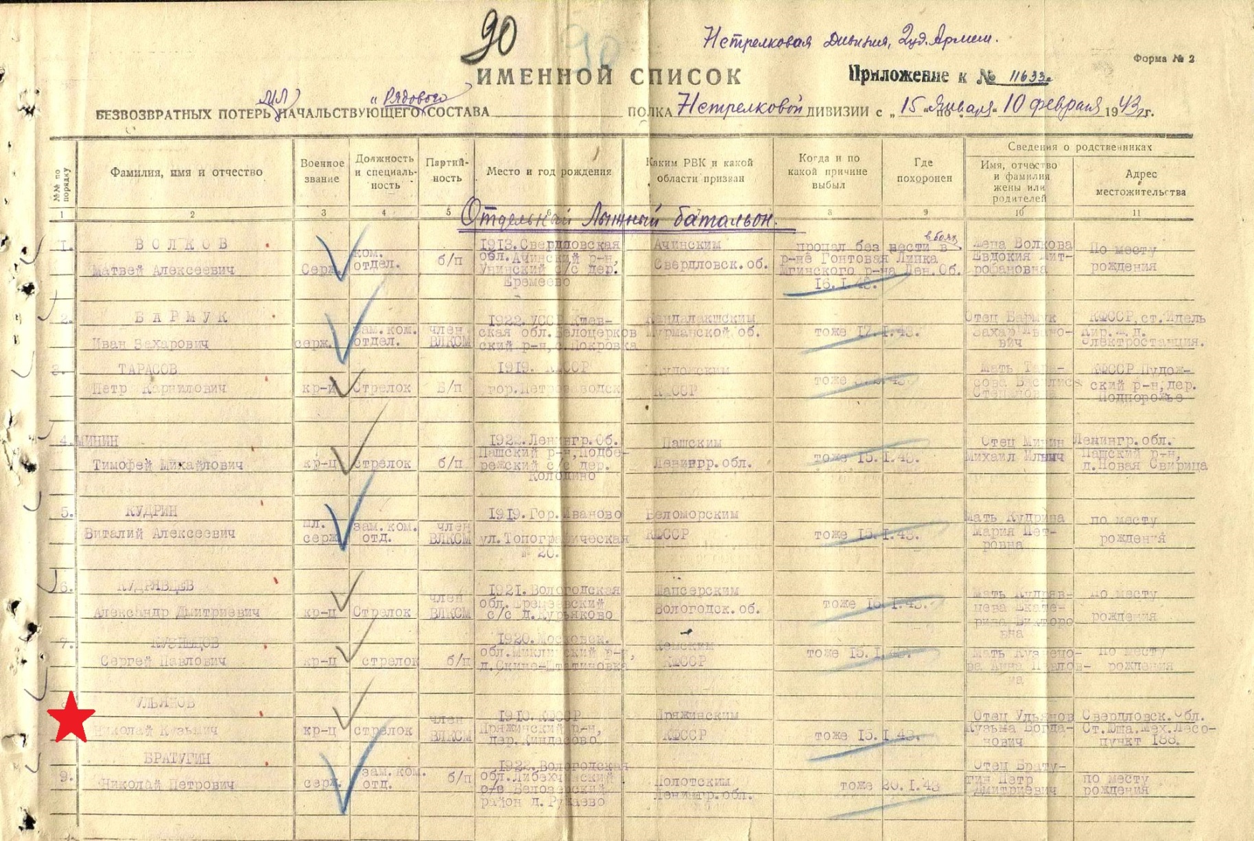 Пропал без вести 15 января 1943 года в Ленинградской области, Кировском районе, д. Гонтовая Липка.