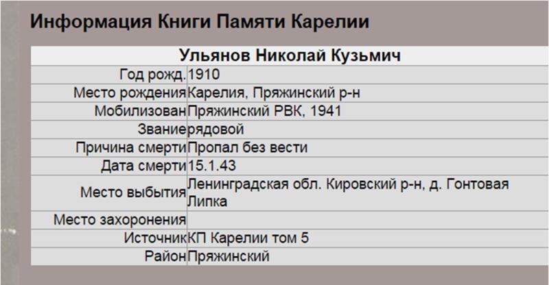 Родился в 1910 году, Карелия, Пряжинский район, д.Киндасово.