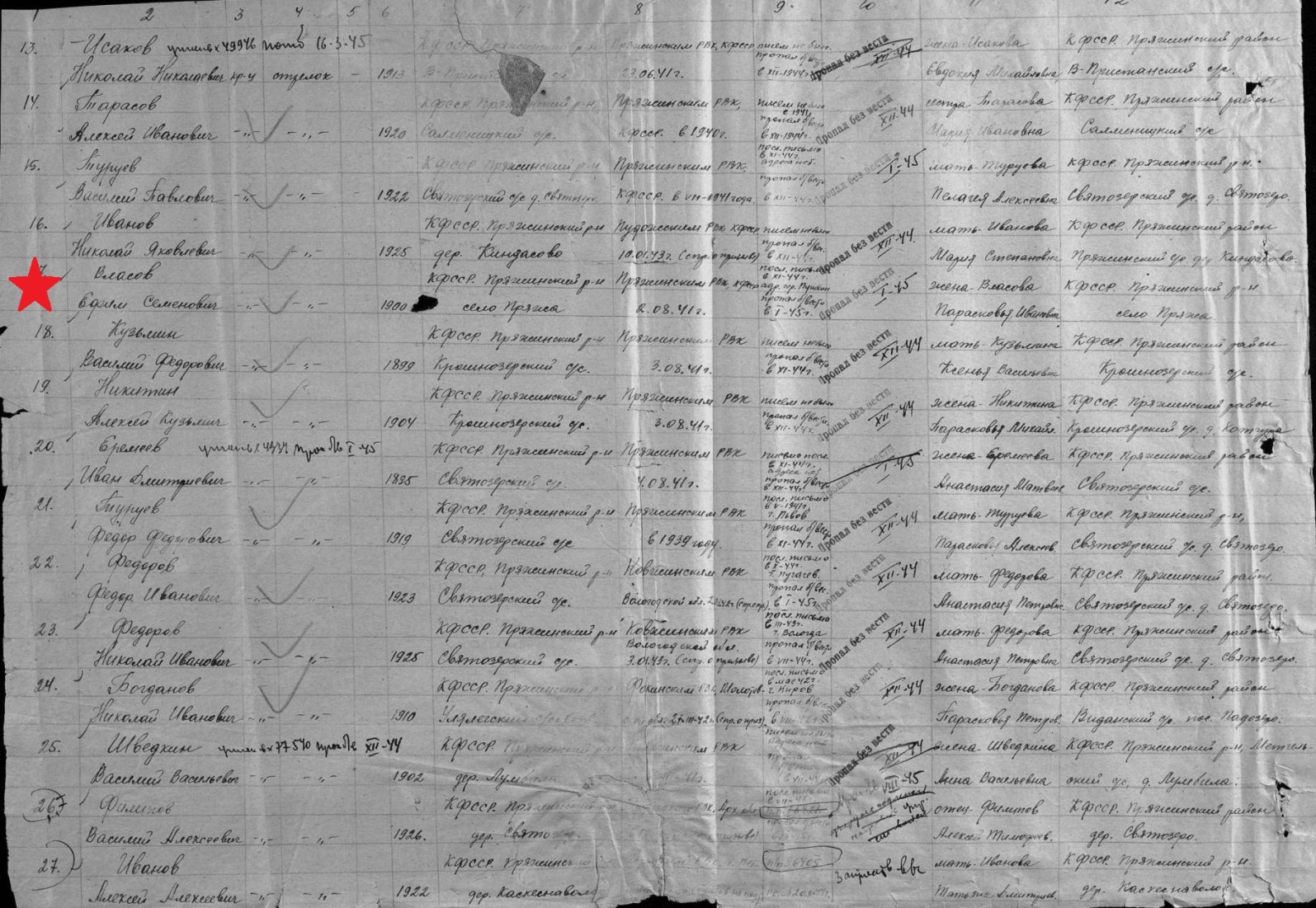 Призван Пряжинским РВК 2.08.1941 г., рядовой.