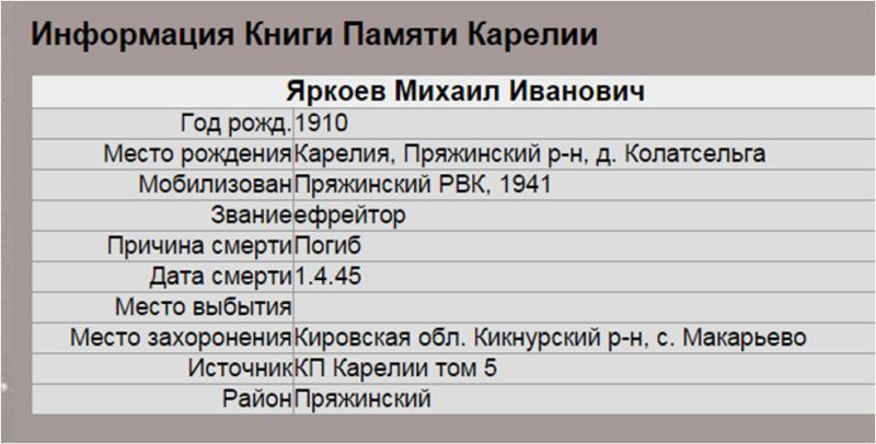 Родился 1910 году, Карелия, Пряжинский район, д. Колатсельга.